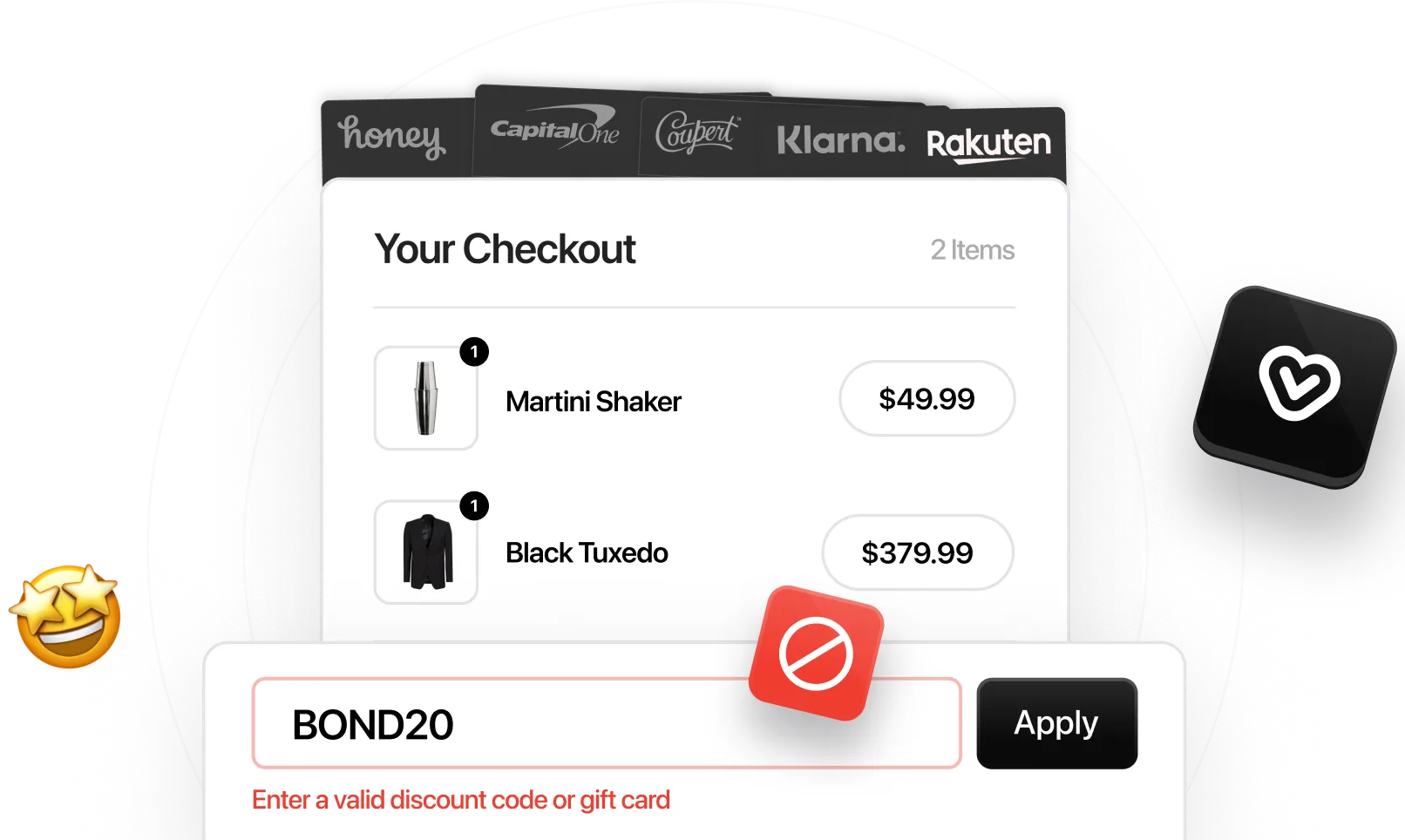 With Veeper's Smart Discounts™, you can apply the smallest discount that gets each customer to buy more. Why offer 25% off SUMMERSALE promo code if the same shopper would still purchase with a 13% discount?