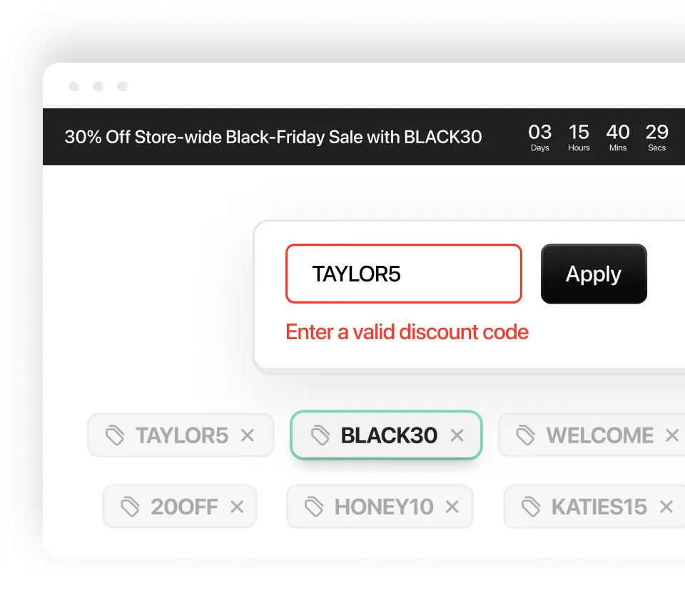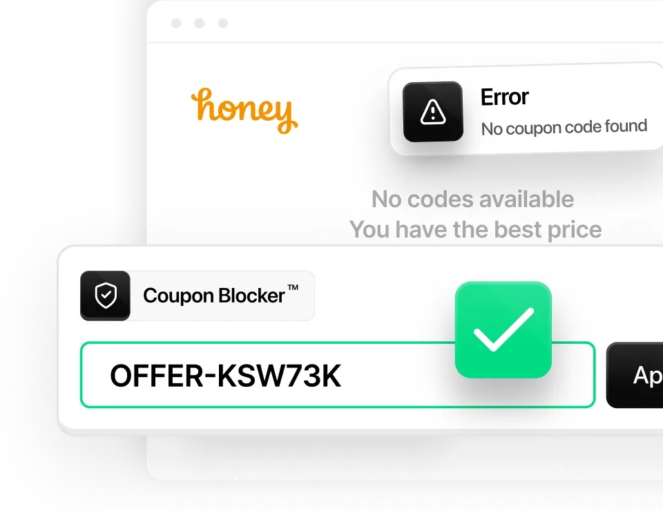 Block coupon extensions from auto-injecting coupons into your checkout - eliminating coupon fraud and attribution errors.